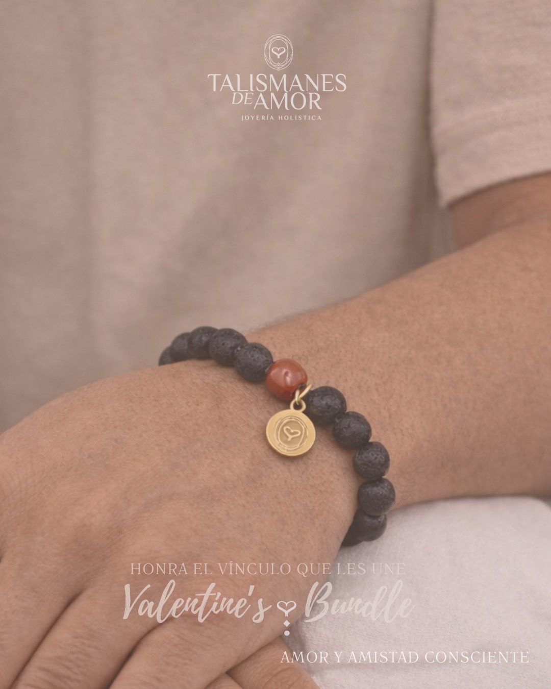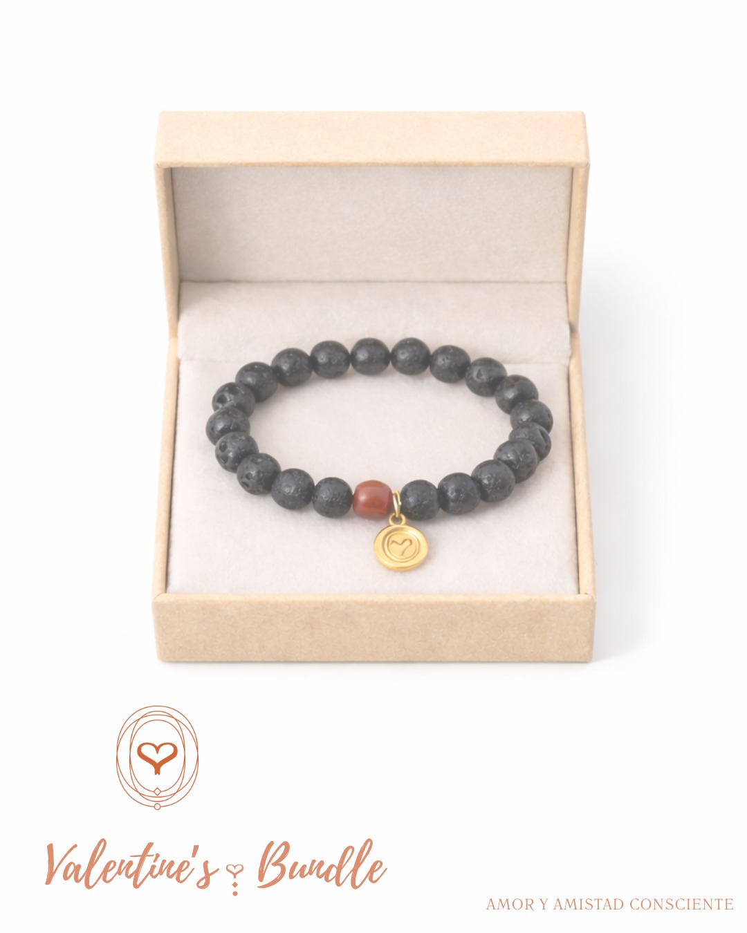 Pulsera de piedra volcánica con las tres piedras semi preciosas que acompañan los colores de tu aura (primario, secundario y álmico).